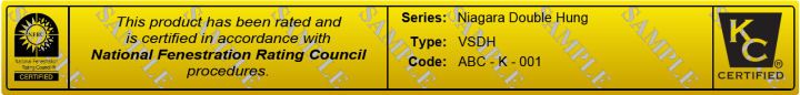 Gold foil NFRC permanent certification labels demonstrate certification to building officials and other end-users for compliance with building code and incentive program energy performance requirements. They are typically affixed to window head concealed by a sash in the closed position, most fitting into a channel as narrow as 5/8" wide. NFRC permanent labels must be applied with an accompanying temporary label to be removed by the consumer after final inspection by a building inspection official.